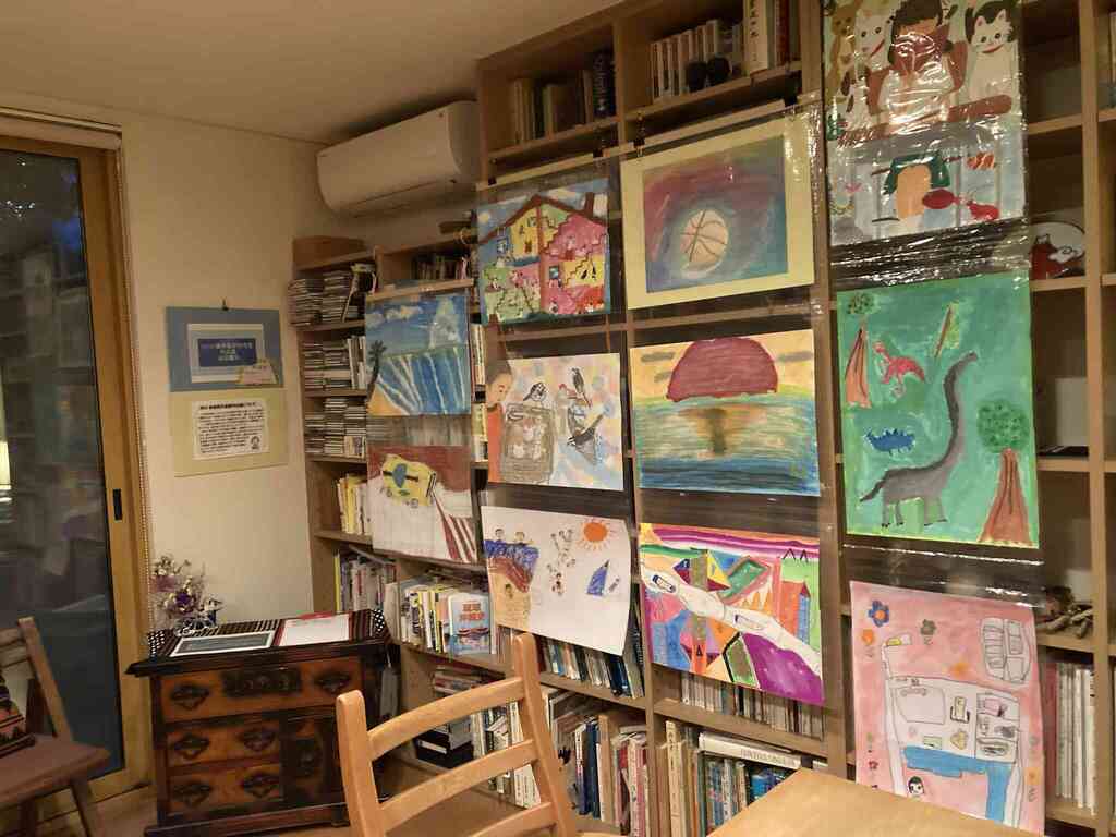 本年度最初の巡回展はカフェ開から。11月10日までの展示です。四谷小・住吉小・日新小のお子さんの作品11枚の展示です。https://community-cafe-kai.com/