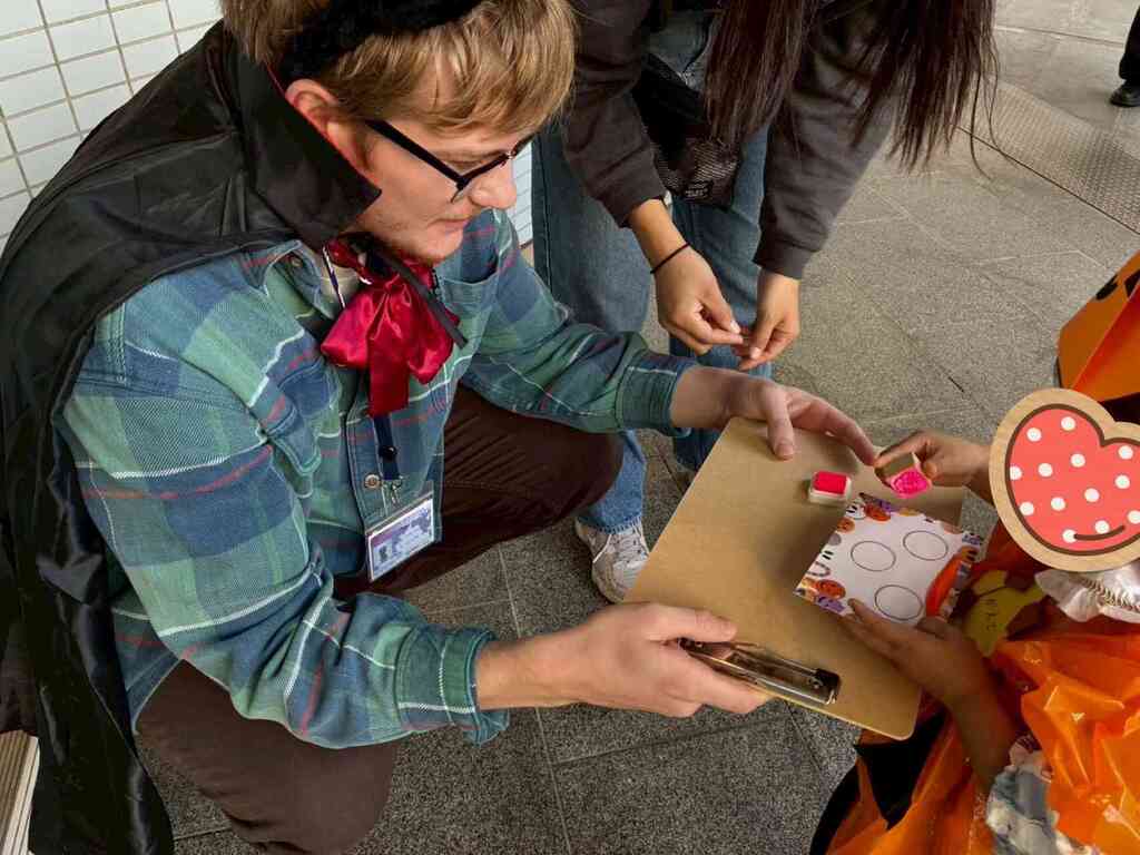 スタンプラリーをしながら校内を回りました!スタンプが全てそろい、お姉さんに見せに行くとお菓子と交換してもらえました!