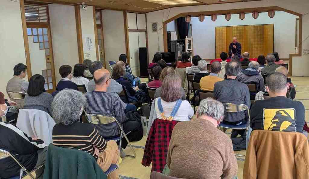 会場を大広間に変更し三十五名の大入り。特別ゲスト柳家小ふねさんが来場し女性ファンも多数。質問コーナーでも小ふねさんが交流を深め盛り上げました。来場者と笑顔で語り合う姿に温かい拍手が広がり会全体が和やかな空気に包まれました。充実の落語会です。