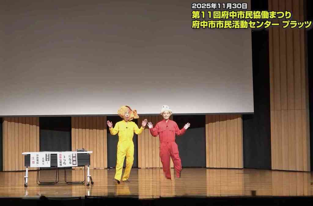 詐欺注意啓発・認知症になる3つの危険な習慣のミニ芝居。しりとりや手話をしながら「幸せなら手をたたこう」「ふるさと」を皆様と歌い楽しい時間を共有しました。