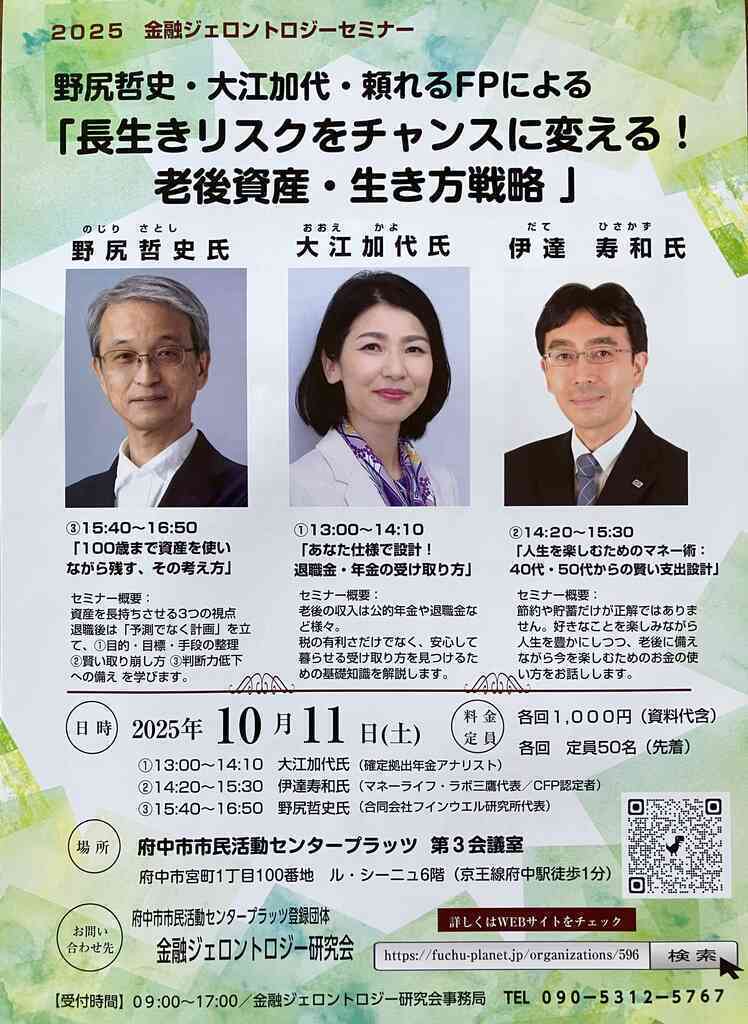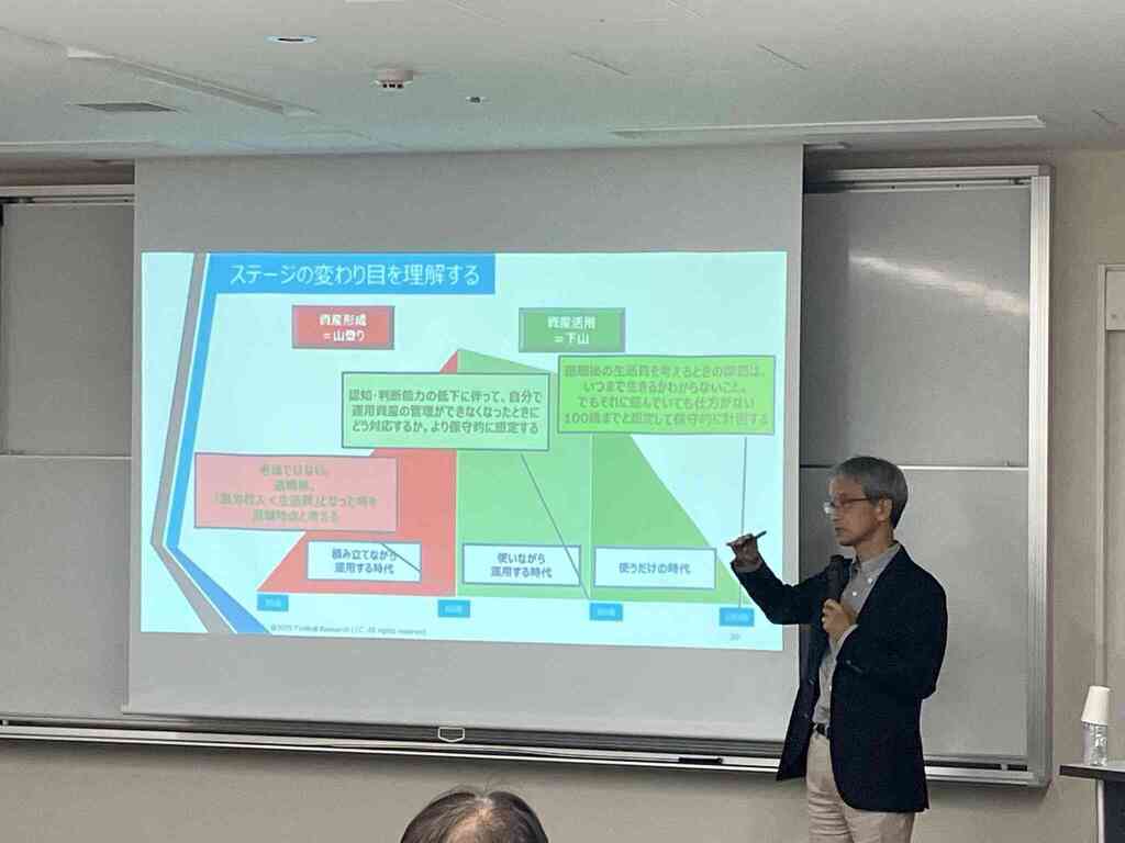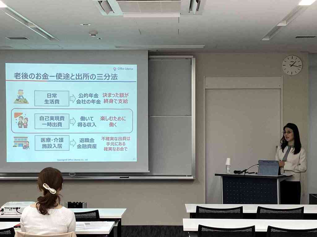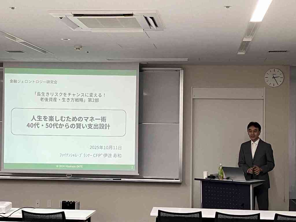 「長生きリスクをチャンスに変える!老後資産・生き方戦略」セミナーを開催いたしました。 本セミナーでは、昨年大変好評を博した『100歳まで残す 資産「使い切り」実践法』の著者であり、合同会社フィンウェル研究所代表の野尻哲史氏を今年も講師としてお迎えし、資産を上手に取り崩すことで「資産寿命を延ばす」ための具体的な考え方やアイデアについてご講演いただきました。 また、確定拠出年金アナリストの大江加代氏からは、老後も安心して暮らすための年金や退職金の受け取り方について、基本的な知識を分かりやすく解説していただきました。 さらに、「頼れるFP」として活動されている伊達寿和氏には、人生をより楽しむための実践的なマネー術についてお話しいただきました。 いずれの講演も参加者から大変好評をいただき、「長生きをリスクとして捉えるのではなく、チャンスに変えていくために、今から準備していきたい」といった前向きな感想が多く寄せられました。