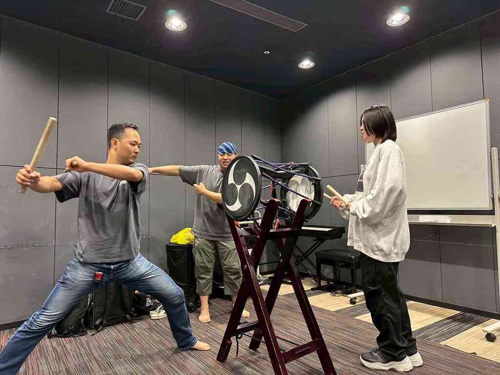 ご縁のきっかけは、日本太鼓同盟主催の「饗縁」でご一緒したことや、古今樂明座の団員が個人的につながりを持っていたことなど、いくつかの出会いが重なったことにあります。そうした積み重ねから今回の合同練習が実現しました。