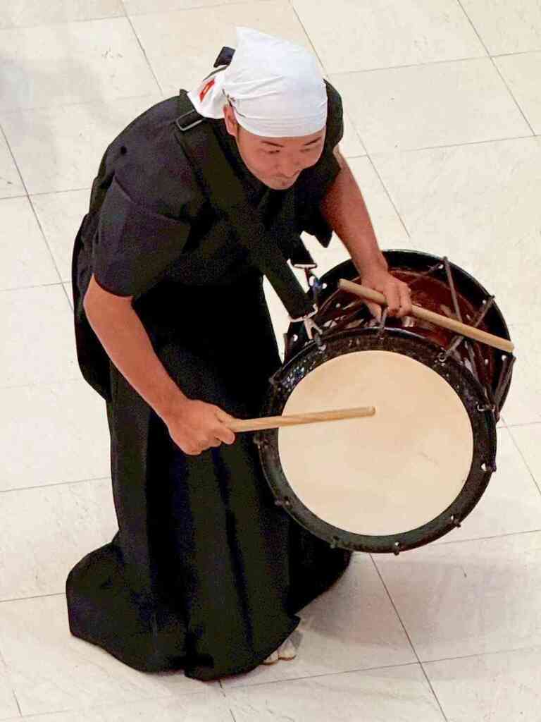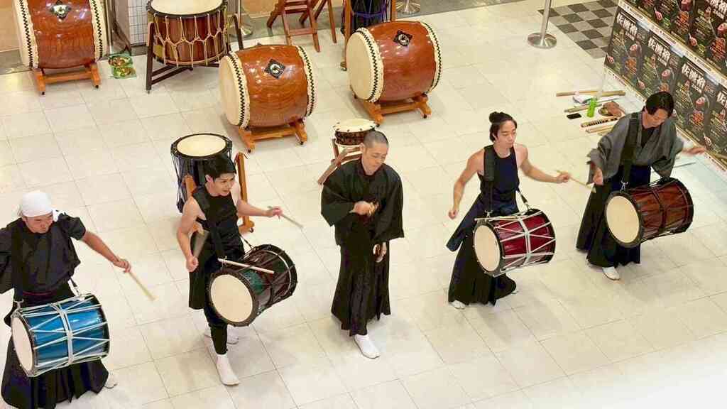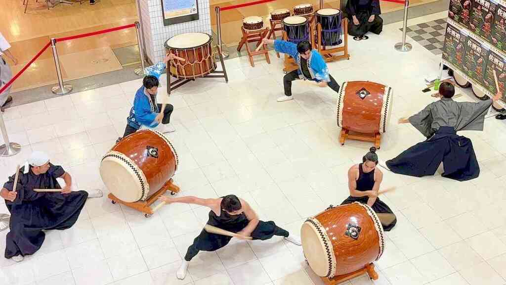 古今樂明座は、2025年8月、河口湖ショッピングセンターベルにて和太鼓演奏を行わせていただきました。吹き抜けのある会場に、和太鼓の力強い響きが広がり、多くの方に足を止めてご鑑賞いただく機会となりました。