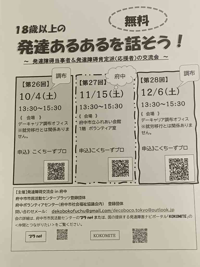大人の発達障碍当時者さんとふれあいたい子育て中の方も、もちろん参加、大歓迎です。