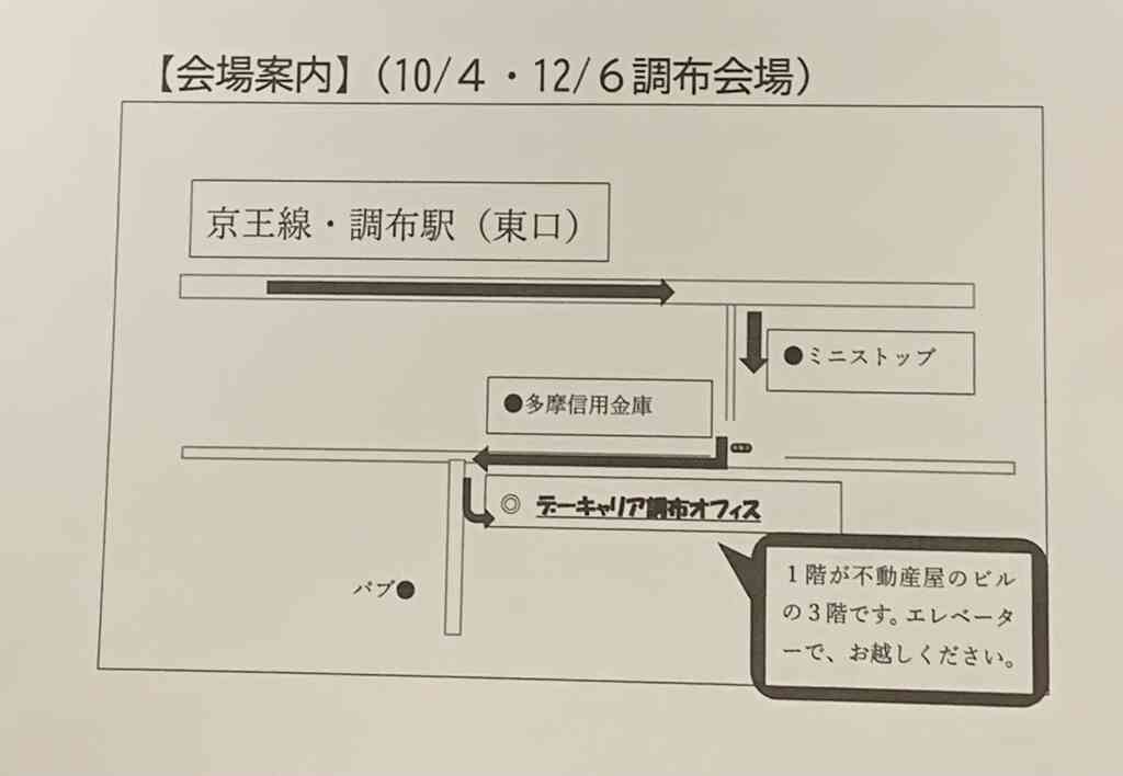東京都 調布市 布田1-26-10 ニビックビル3階(右側面からお入りください)