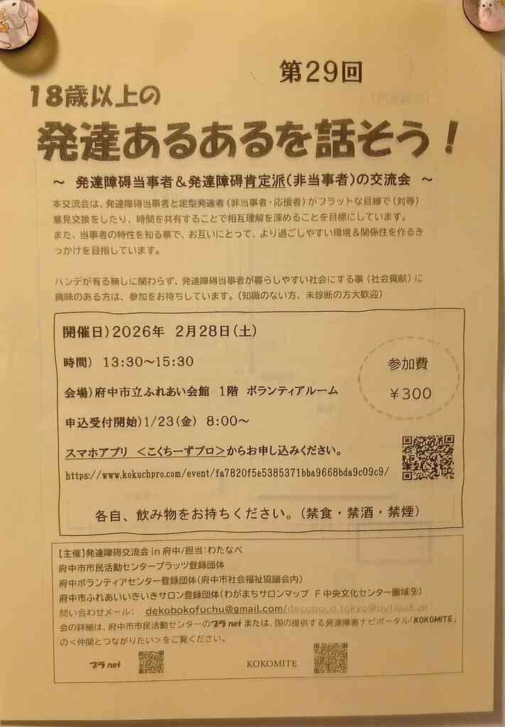 大人の発達障碍当時者さんとふれあいたい子育て中の方も、もちろん参加、大歓迎です。