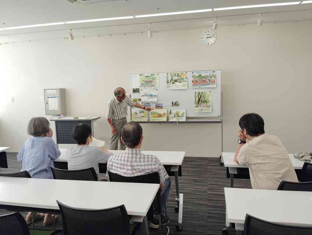 毎回、絵を描き終わったあとに先生に講評をして頂きみんなで反省し次回の向上の手がかりしております。描画中でみんなで他の人の絵を見て意見を出しあったりして親睦を深めています。
