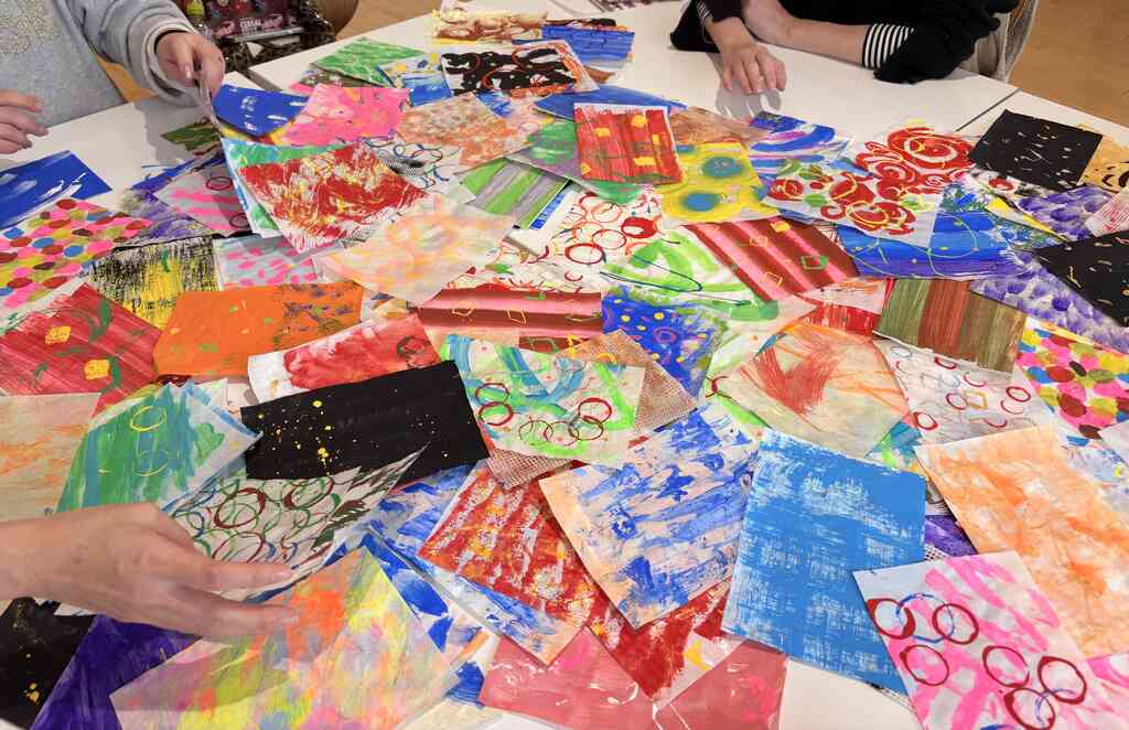 例:コラージュ、消しゴムハンコづくり、パステルアート、絵の具遊び、言葉あそび、自由な書(墨を使った自由創作)ほか