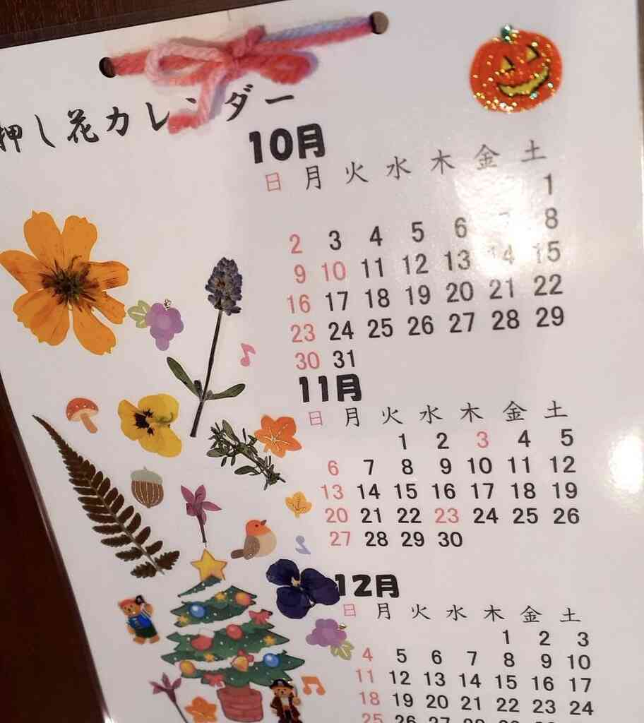 押し花カレンダー小:100円押し花カレンダーA4:200円