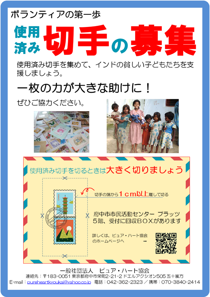 使用済み切手を集めて、インドの貧しい子どもたちを支援します。