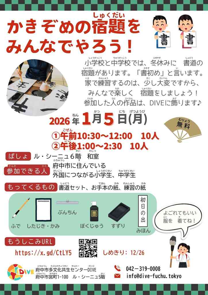 参加(さんか)したひとは、かきぞめを DIVEに かざります♪