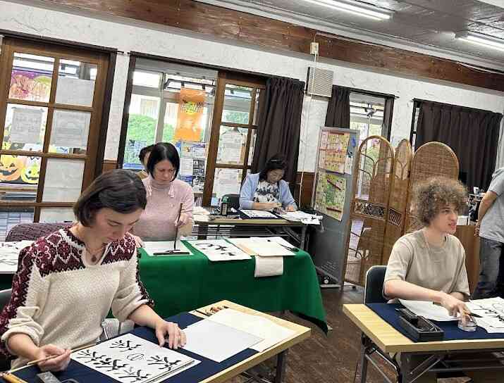 2/4 初めての書道体験 ネパールから5名 @谷保プラムジャム