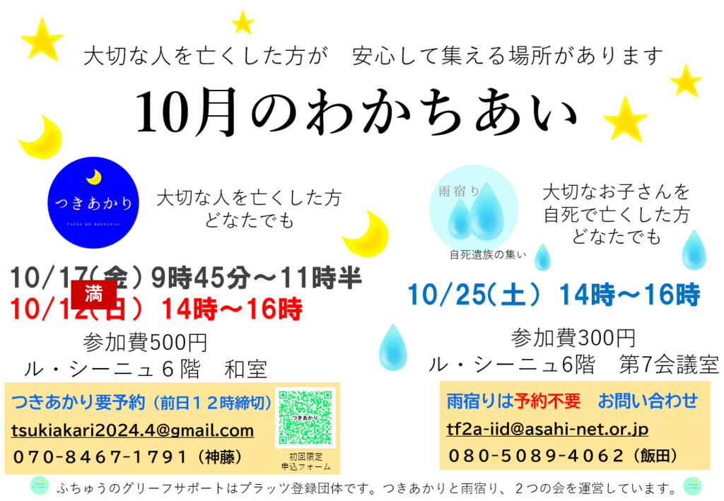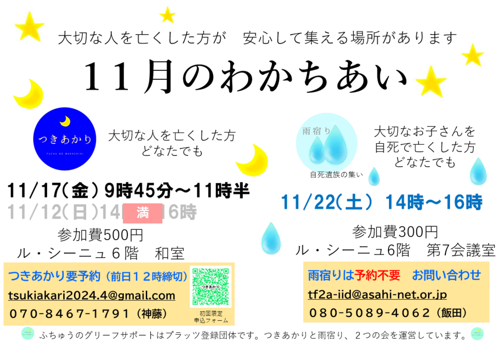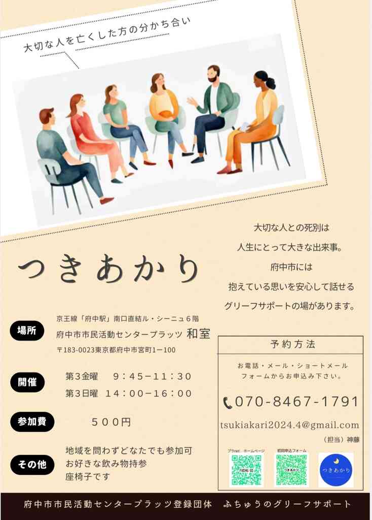 東京の府中駅にて大切な人を亡くした方のグリーフケア・サポート活動をしています。市外の方も参加可能です。