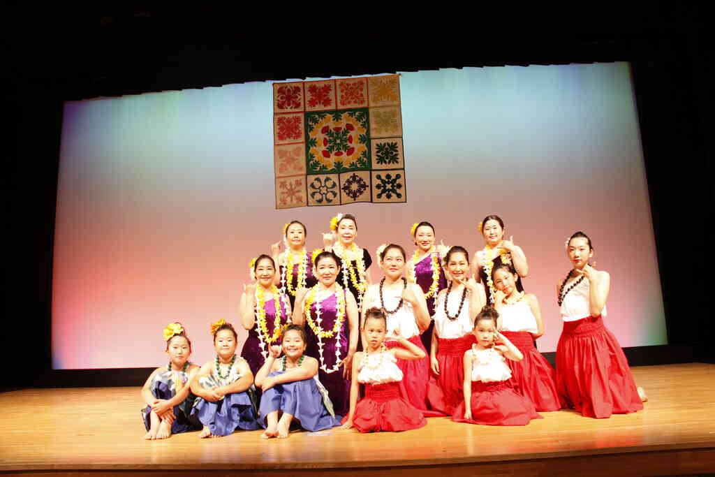 未就学児から小学校6年生と、その母たちでフランダンスを披露します。アロハの精神を大切に、親子で楽しく活動するフラダンスサークルです。