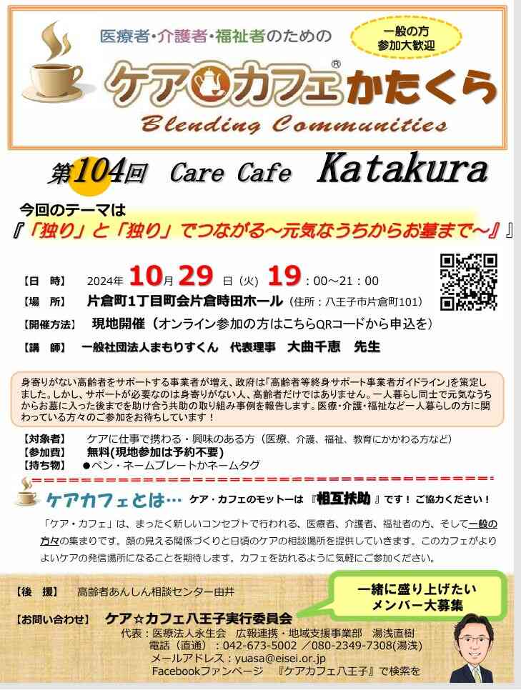身寄りがない高齢者をサポートする事業者が増え、政府は「高齢者等終身サポート事業者ガイドライン」を策定しました。しかし、サポートが必要なのは身寄りがない人、高齢者だけではありません。一人暮らし同士で元気なうちからお墓に入った後までを助け合う共助の取り組み事例を報告します。グループワークもあります。特に医療・介護・福祉など一人暮らしの方に関わっている方々のご参加をお待ちしています!